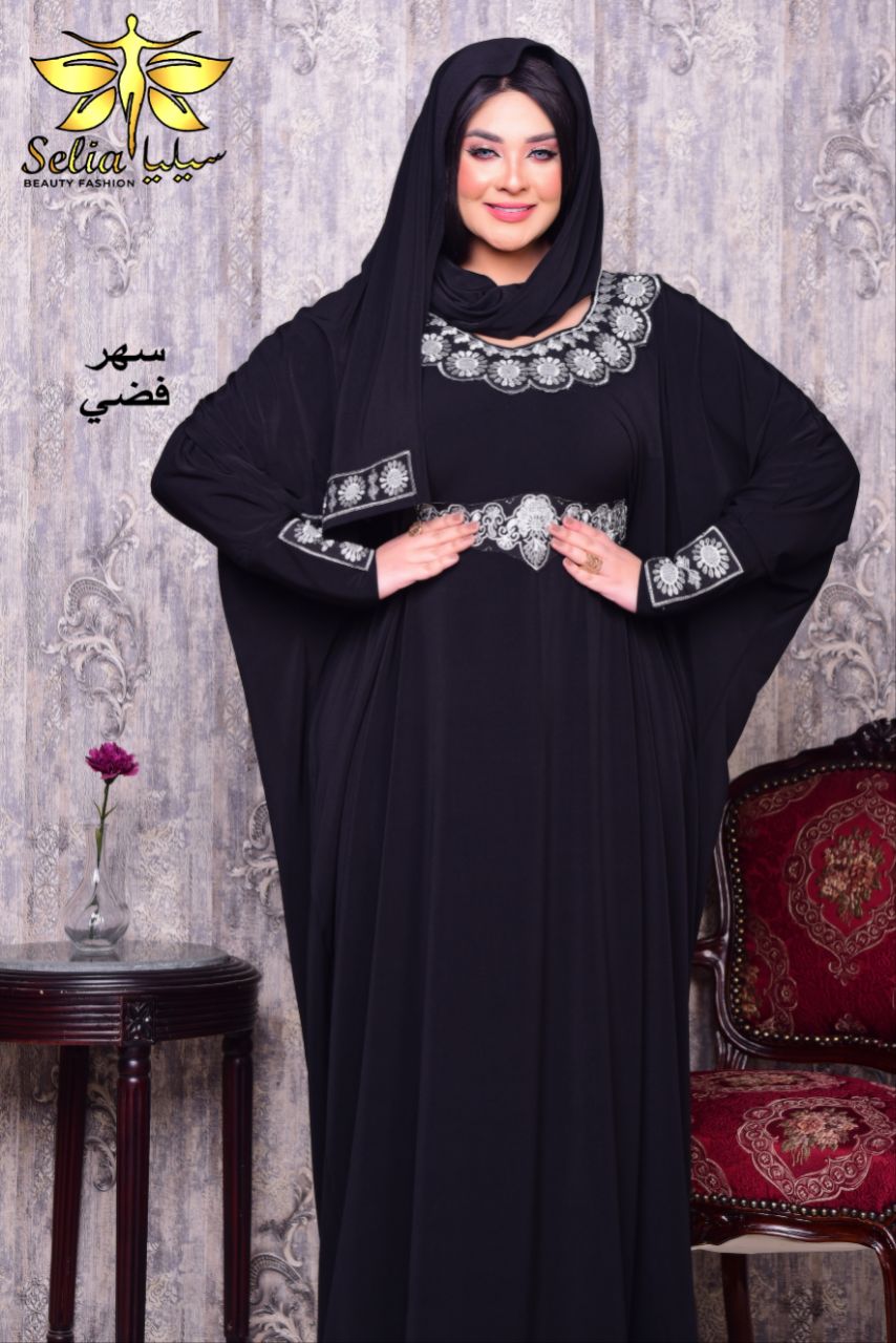 تطريز كثيف جدا بخيوط السيرما على الصدر وشكل حزام على الوسط بشكل بارز وجميل